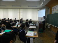 仕事をする上で大切にしていることや、中学生に頑張ってほしいことを、実際の仕事内容と関連させながらお話をしていただきました。