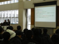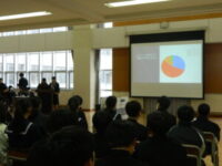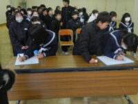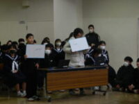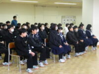 学年委員会が企画・運営をする学期末の学年集会を行いました。 前半は2学期の振り返りをしました。 事前のアンケートをもとに、自分たちの成長と今後の課題を確認しました。 後半はクラス対抗のレクリエーションをしました。 クラスの仲間と話し合ったり、正解したら一緒に喜んだりして、とても楽しい時間になりました。 2学期も残りわずかです。 全員が気持ちよく冬休みを迎えられるよう、もうひと頑張りしていきましょう。