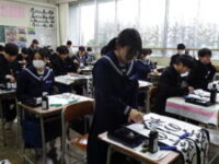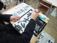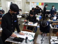 始業式が終わった後、全校で書初を行いました。真剣な様子で一画一字を丁寧に書いていました。