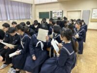学期に1回の学年道徳を行っており、今回の内容は滑川中学校の伝統である合唱についての話でした。