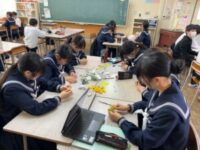先日、来年度の修学旅行で訪れる広島平和記念公園での平和学習に向けて、戦争のこと、原爆のこと等について学年集会を行いました。その際、折り鶴についての話もしました。本日は学年全体で平和への願いを込めて、一人一人が丁寧に折り鶴を作りました。