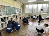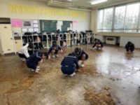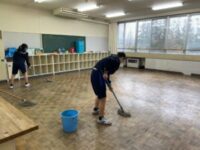 放課後に学年全体で床磨きをしました。1年間お世話になった教室を感謝の気持ちを込めてみんなで掃除をしました。美化委員が最後に丁寧にワックスがけをしました。