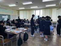 今年度よりマイエプロンで給食の準備をすることになりました。これまで見慣れていた白衣ではなく、それぞれ違うエプロンを着用しているのでとても新鮮です。3年生は今年度も給食の時間を少しでも長くするために、学級みんなで協力してスピーディーに準備をしています。
